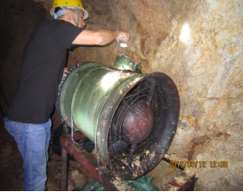 該礦采用抽出式機(jī)械通風(fēng)系統(tǒng),礦山在XJ390回風(fēng)斜井口安裝一臺礦用節(jié)能風(fēng)機(jī),并設(shè)有反風(fēng)裝置,能進(jìn)行反風(fēng)。通風(fēng)設(shè)施較為完善,布局合理。礦山供風(fēng)量能滿足礦山生產(chǎn)需要,有毒有害氣體濃度未超過《規(guī)程》規(guī)定。礦山制定有通風(fēng)管理制度,建立有測風(fēng)測氣檔案資料。礦山的通風(fēng)設(shè)施、通風(fēng)能力、通風(fēng)效果與質(zhì)量、反風(fēng)設(shè)施、通風(fēng)管理符合規(guī)定要求。