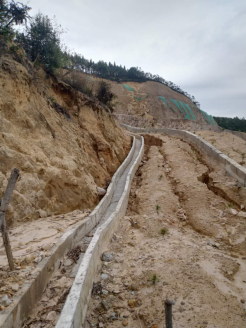 礦區(qū)水文地質(zhì)條件屬簡單類型,大氣降水為采場充水的主要來源;采用的山坡露天臺階開采,可自然排水。因此礦山防排水方案簡單。礦山采用的山坡露天臺階開采,各臺階可自然排水。礦山采場防水方式按照設(shè)計在采場外圍挖設(shè)有截洪溝,坡度根據(jù)實際地形而定且均大于1%。水溝斷面為漿砌梯形結(jié)構(gòu),規(guī)格為:下寬0.3~0.4m、上寬0.5~0.6m、深0.4m。采場排水良好,防洪溝設(shè)置能滿足實際排水需求。
