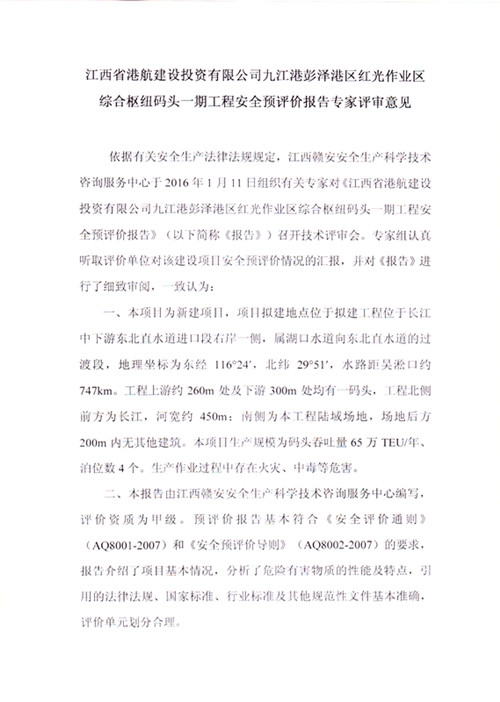 江西省港航建設投資有限公司九江港彭澤港區(qū)紅光作業(yè)區(qū)綜合樞紐碼頭一期工程