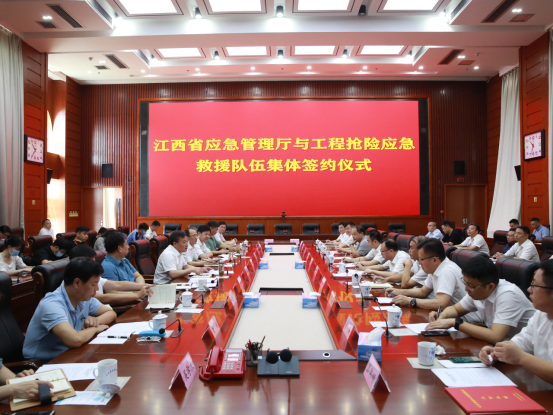 簽約儀式上,宣讀組建“江西省工程搶險(xiǎn)應(yīng)急救援隊(duì)伍”和授牌“江西省應(yīng)急搶險(xiǎn)救援潛水隊(duì)”的決定;與中國安能第二工程局簽訂《應(yīng)急救援合作協(xié)議》,向省礦山救護(hù)總隊(duì)和應(yīng)急搶險(xiǎn)救援潛水隊(duì)授牌,并與江西煤業(yè)礦山救護(hù)總隊(duì)、中電建江西水電工程局、中建股份江西分公司、中建五局江西分公司、江西水投建設(shè)集團(tuán)、江水建設(shè)集團(tuán)、三一重工等企業(yè)互換《災(zāi)害事故應(yīng)急救援聯(lián)動工作機(jī)制》文本;9家企業(yè)和單位代表發(fā)言。
